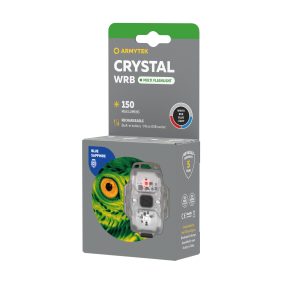 Конструкция, материал корпуса и особое расположение диодов обеспечивают широкий угол света в 140°, оптимальный для применения на близком расстоянии. Заливающий луч делает Crystal WRB превосходным основным или дополнительным источником света на пробежке, велопрогулке, для обслуживания авто и решения повседневных задач. В дополнение к диоду белого света Crystal WRB оборудован диодом для использования в качестве красно-синего предупредительного сигнала. Crystal WRB оснащен емким для своего размера аккумулятором и работает до 50 дней в режиме минимальной яркости.