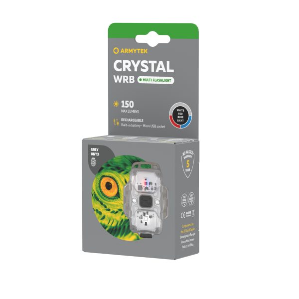 Конструкция, материал корпуса и особое расположение диодов обеспечивают широкий угол света в 140°, оптимальный для применения на близком расстоянии. Заливающий луч делает Crystal WRB превосходным основным или дополнительным источником света на пробежке, велопрогулке, для обслуживания авто и решения повседневных задач. В дополнение к диоду белого света Crystal WRB оборудован диодом для использования в качестве красно-синего предупредительного сигнала. Crystal WRB оснащен емким для своего размера аккумулятором и работает до 50 дней в режиме минимальной яркости.