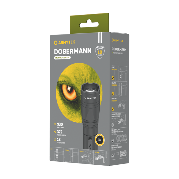 Комплектация: — Фонарь; — Чехол; — Клипса; — Ремешок на руку; — Резиновый грип-упор; — Запасной колпачок кнопки; — Запасные уплотнительные кольца — 2 шт.; — Руководство пользователя.