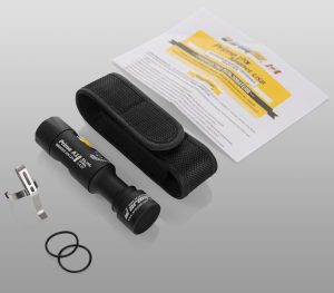 Комплектация: фонарь, клипса, чехол, запасные уплотнительные кольца – 2 шт., инструкция по эксплуатации.
