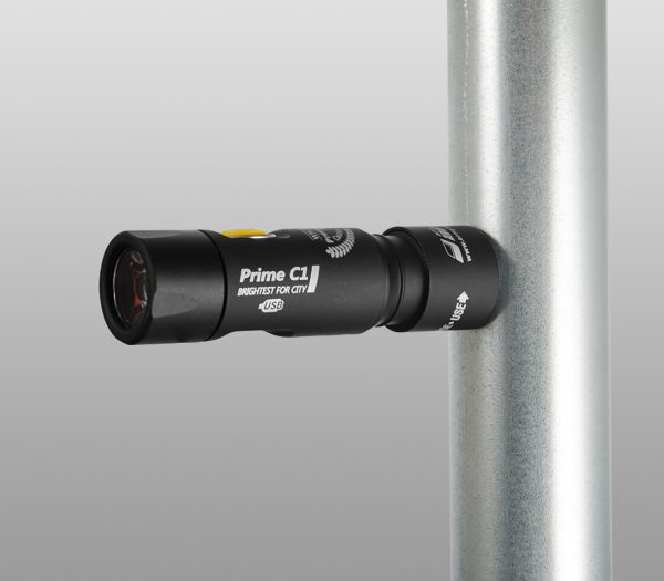 В комплект входит стальная клипса, которая надежно фиксирует фонарь на одежде, рюкзаке и даже на козырьке кепки. Подходит фонарь и для выполнения различных работ: наличие магнита в задней крышке позволяет закрепить его на металлической поверхности. Более того, Prime C1 Pro совместим с фирменным велосипедным креплением, а значит карманный фонарь способен при необходимости заменить велофару. Благодаря четкому центральному пятну широкий луч достигает расстояния в 114 метров.