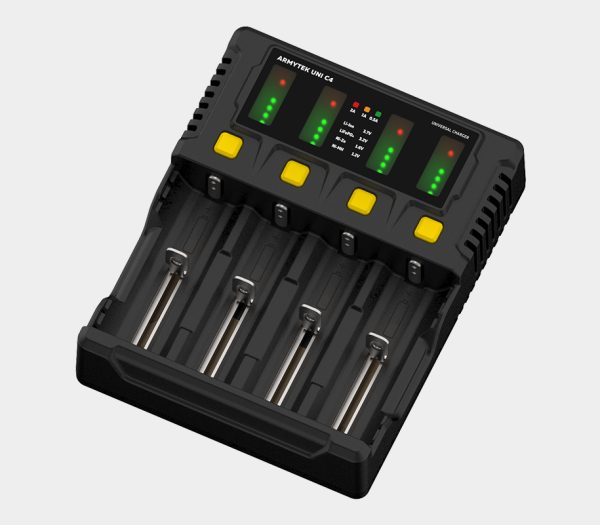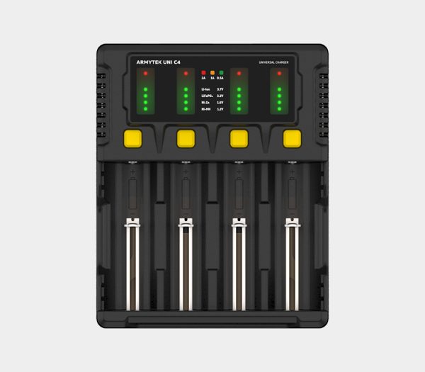 Uni C4 – универсальное зарядное устройство с интеллектуальным автоопределением типа аккумулятора, уровня заряда и оптимального тока. Одновременно заряжает до 4 аккумуляторов разного типа током до 2А. Отдельная кнопка для каждого канала обеспечивает простое ручное управление. Автомобильный адаптер в комплекте.