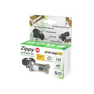 Тонкий, легкий и стильный Armytek Zippy теперь 3 в 1. Мультифонарь Zippy Extended Set, не имеющий аналогов, подходит для ежедневного использования, выполнения работ и кемпинга. Сверхпрочное стальное кольцо позволяет носить фонарь вместе с ключами. Съемная клипса из нержавеющей стали надежно крепится на одежде или ремне. Поворотное на 360° крепление с магнитом и пластиковая клипса на кепку обеспечивают возможность использования фонаря в качестве налобного. Сильный магнит в креплении надежно удержит фонарь на металлической поверхности. Встроенный Li-Pol аккумулятор легко заряжается с помощью Micro-USB кабеля.