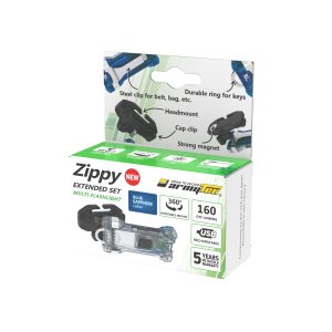 ЯРЧЕ, ЧЕМ ВЫ МОГЛИ СЕБЕ ПРЕДСТАВИТЬ. Zippy Extended Set WR — это версия самого компактного мультифонаря от Armytek, оснащенная белым и красным диодом. Невероятно яркий для фонаря такого размера красный свет в 2 раза превосходит самые мощные наключные аналоги. В комплект входит инновационное поворотное на 360° налобное крепление с сильным магнитом и пластиковой клипсой на кепку. Благодаря такому оригинальному решению Zippy ES WR можно использовать для ежедневного применения, обслуживания авто, ремонтных работ, кемпинга, а также любой другой повседневной и профессиональной деятельности. Мультифонарь 3 в 1: 1. Налобный фонарь. 2. На каждый день. 3. Наключный фонарь.