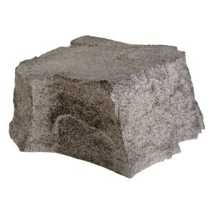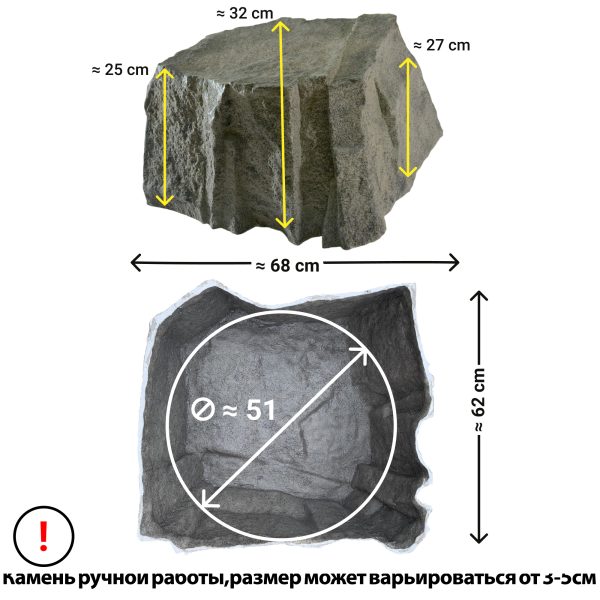 Ребристый и слегка заостренный кверху камень-валун M-04 держится гордо. Он экстравагантен, но при этом не доминирует на участке.